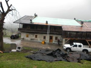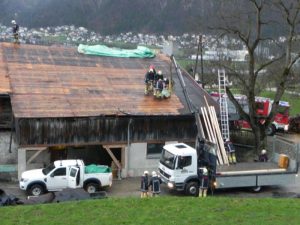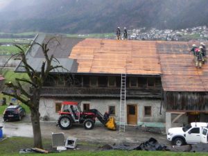 Am Dienstag, den 31. März 2015 wurden wir gegen 18.30 Uhr alarmiert. Aufgrund der heftigen Sturmböen wurde im Weiler Achrain bei einem Bauernhof das Bitumendach abgetragen. Mittels Planen bzw. Feuerwehr-Notdächern konnten wir das Wohngebäude und auch den Tennenbereich abdecken um größere Wasserschäden zu vermeiden.