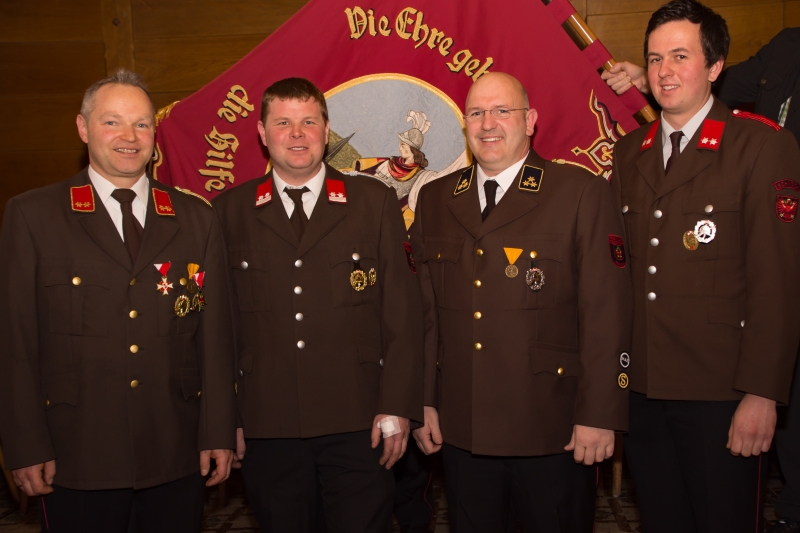 Für 40 Jahre Tätigkeit im Feuerwehr und Rettungswesen wurden Hermann Bichler, Hubert Molin, Josef Schellhorn, Jakob Strasser und Josef Tischler geehrt. Die Kameraden Johann Exenberger und Johann Pfisterer waren leider verhindert und werden später geehrt.