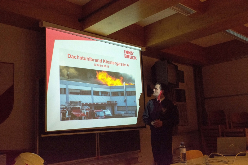 Er stellte uns die Berufsfeuerwehr kurz vor und konnte uns anschließend über zwei Brandereignisse in Innsbruck berichten.