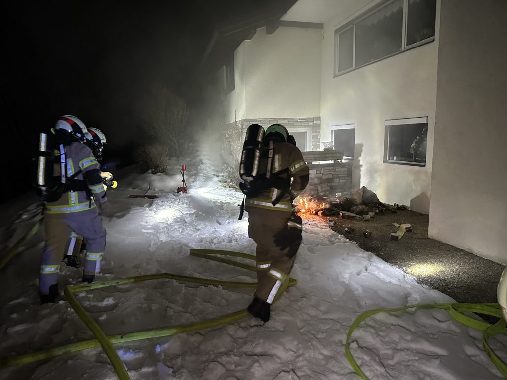 Zur Unterstützung wurde die Stadtfeuerwehr Kufstein alarmiert, die die Freiwillige Feuerwehr Schwoich mit einem Atemschutztrupp unterstützte.